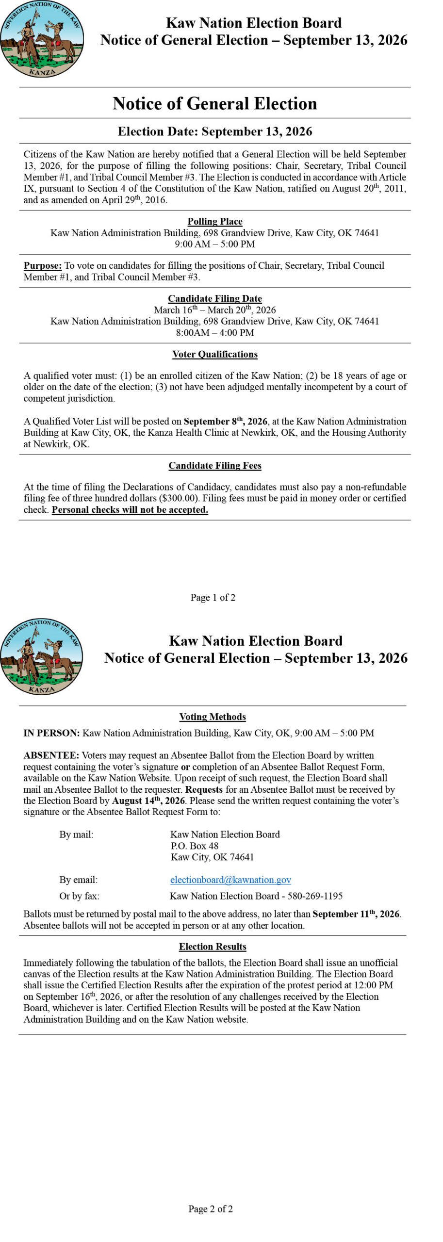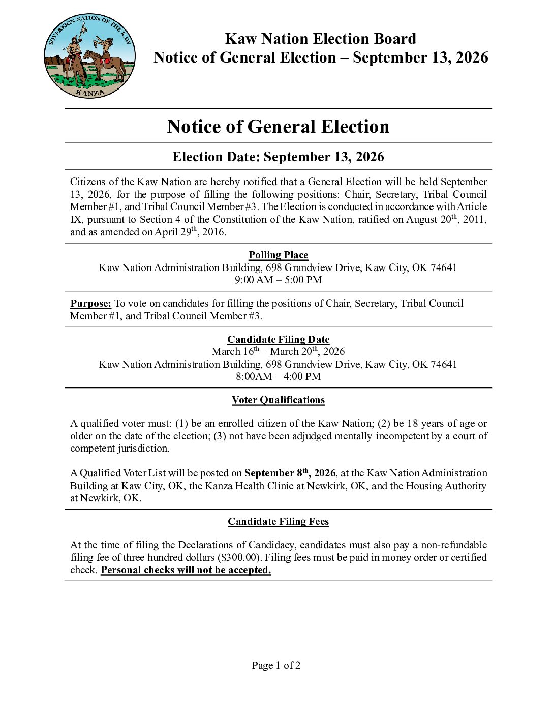 Kaw Nation Offices Closed – Labor Day
