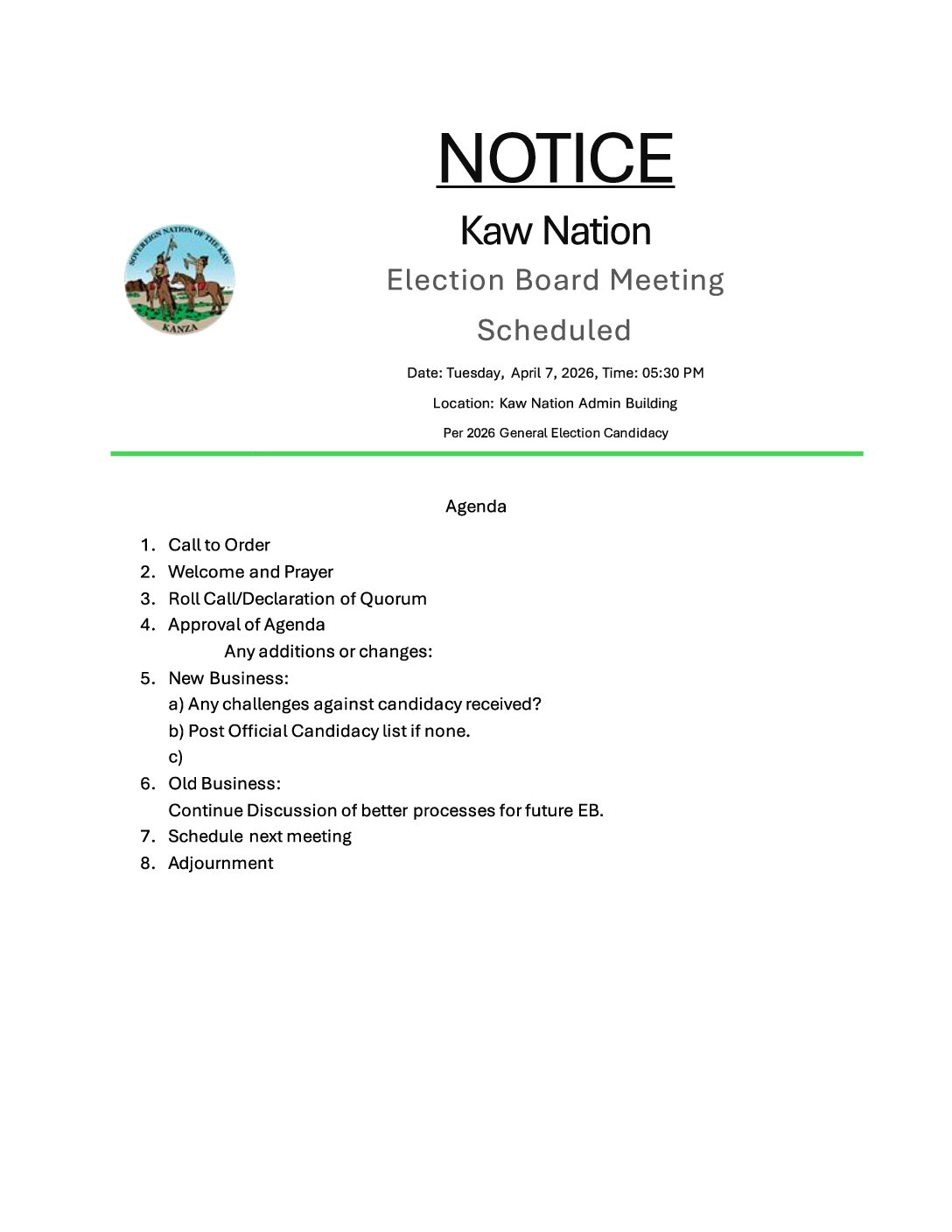 KAW NATION OFFICES CLOSED – GOOD FRIDAY