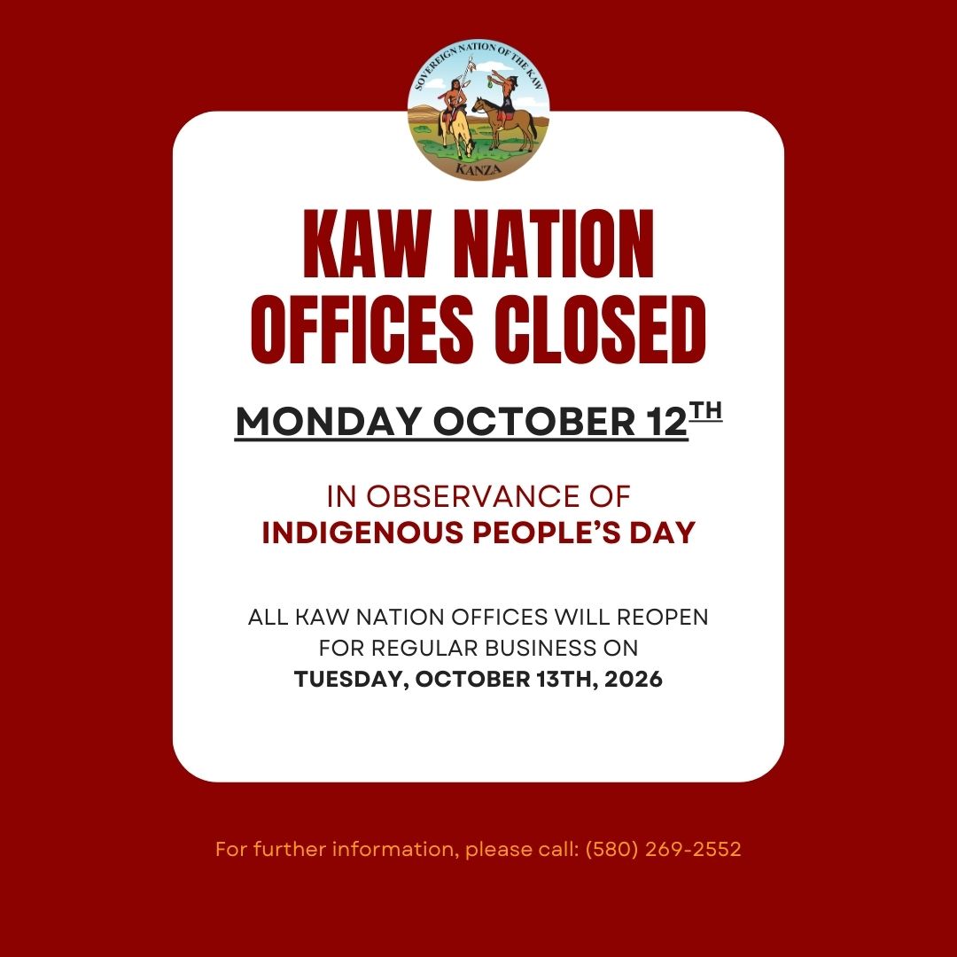 Kaw Nation Offices Closed – Indigenous Peoples Day