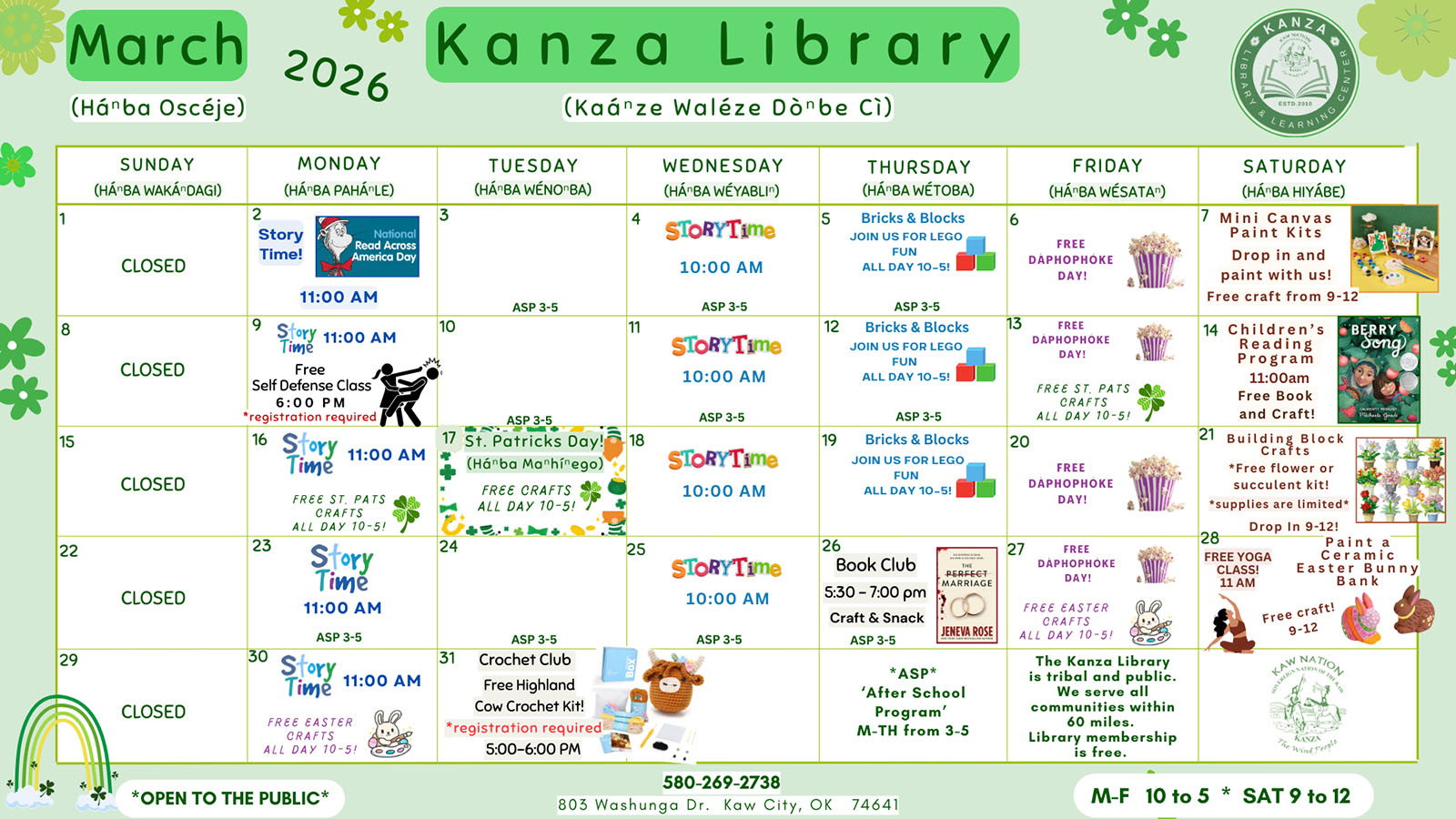 The Kanza Library is open to all Kaw Tribal members. Our library is also open to the general public. Come in to apply for a free library membership that will connect you to our wonderful services. Everyone is welcome!